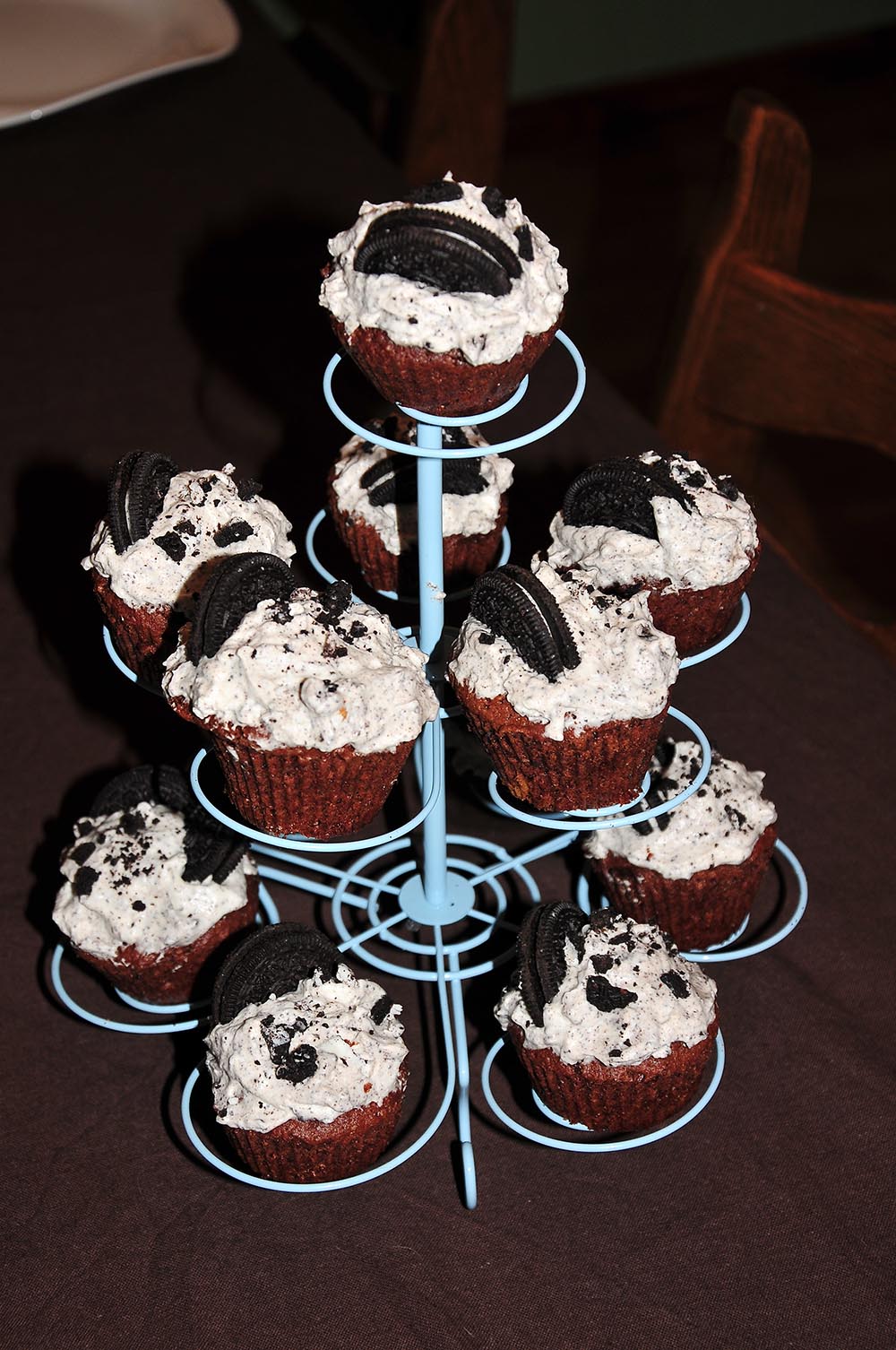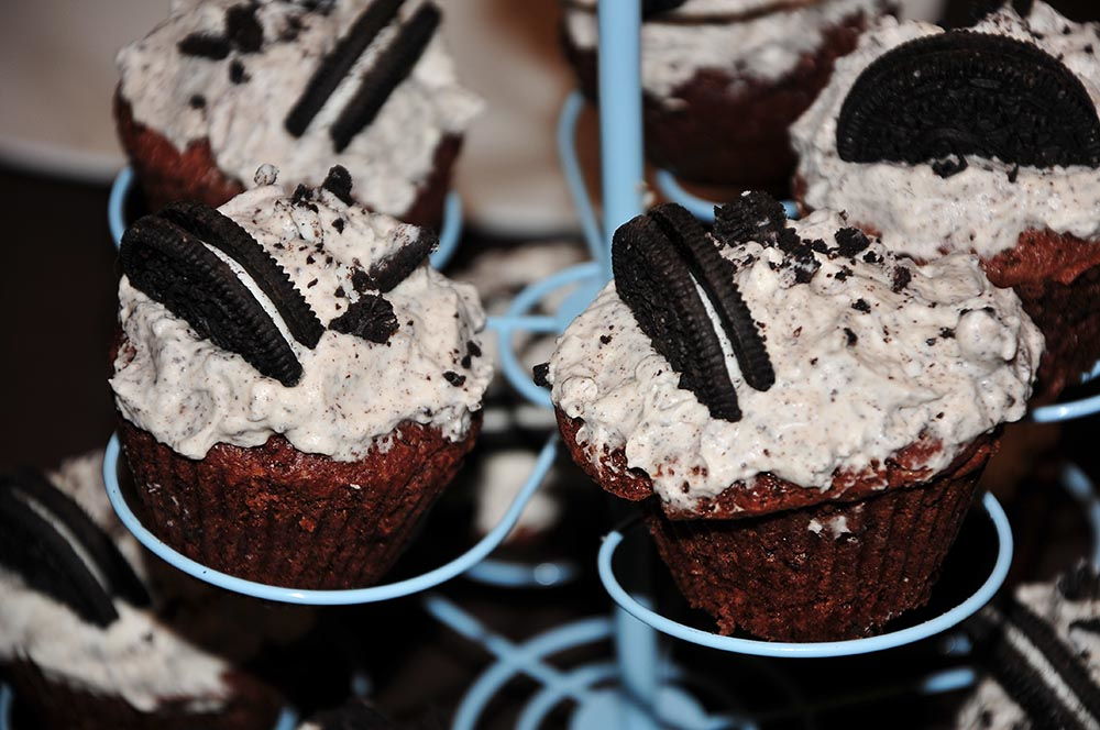 - Ajouter un demi oréo sur chaque cupcake. Réserver au frais.