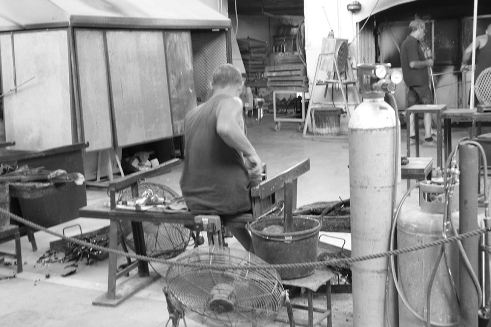 Nous avons alors assisté , presque avec des yeux d’enfants, aux différentes étapes de la fabrication de ces objets délicats, et découvert, comment à partir d’une simple boule rougeoyante, les souffleurs de verre parvenaient à composer des formes précises, et à leur donner des couleurs vives et seyantes…
