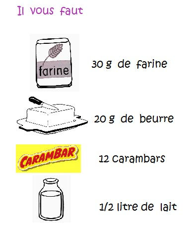1) A feu moyen, faites fondre les carambars dans le lait. Mélangez doucement.