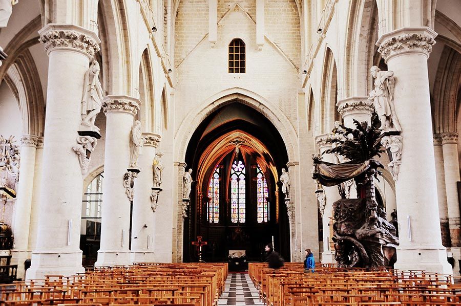 Nous avons remonté la rue Royale, et n’avons cette fois-ci pas bifurqué vers le Mont des Arts. Nous avons au contraire poursuivi notre chemin vers le Sablon, le quartier des antiquaires, et sommes passés devant l’église gothique Notre-Dame. (Pour l’anecdote, c’est ici que venait se recueillir Paul Claudel alors qu’il était en poste diplomatique à Bruxelles.)