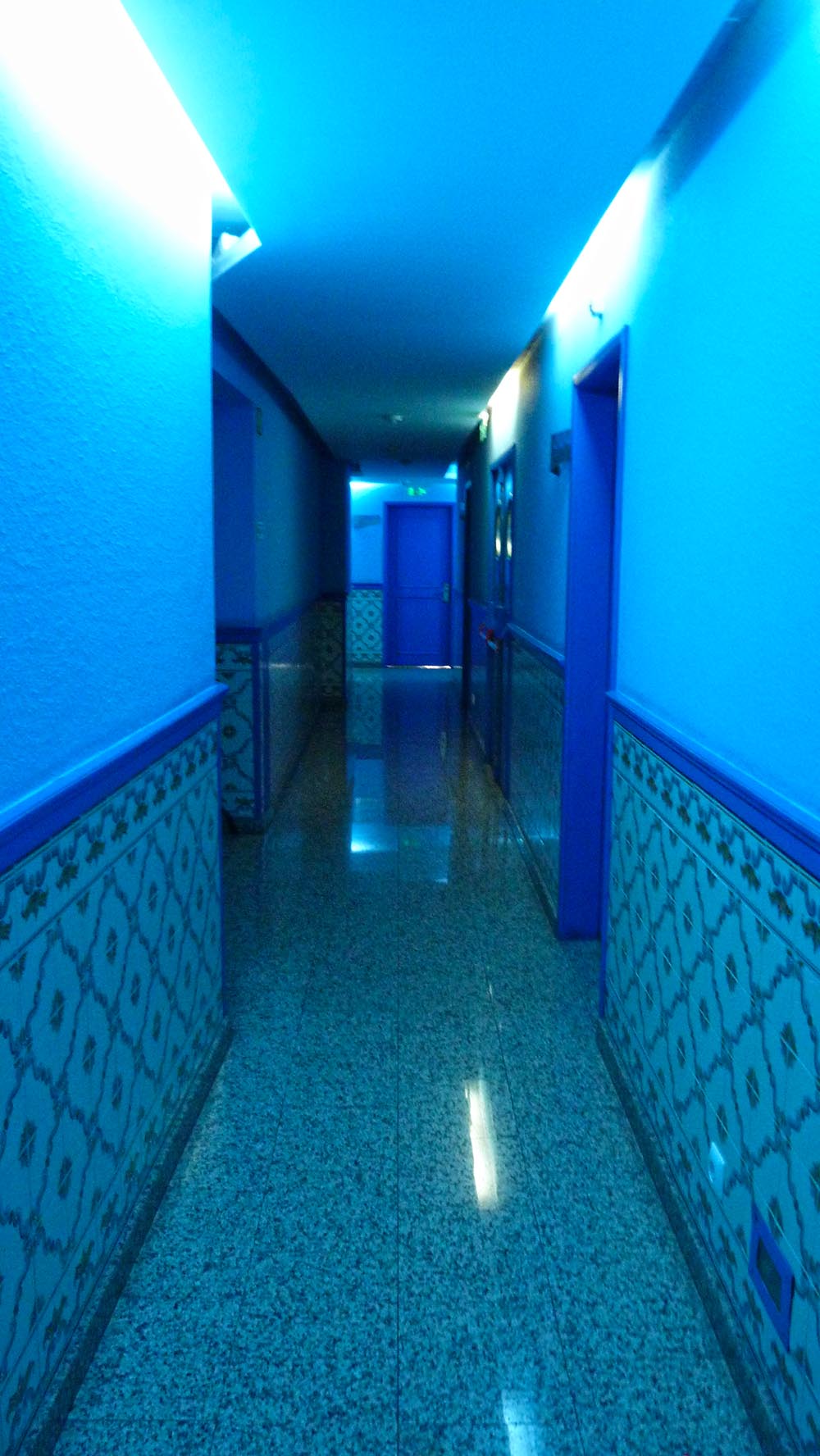 Faudra demander aux proprio de repeindre en arc-en-ciel ce couloir car bleu comme ça… ça fait peuuuuuur ^^