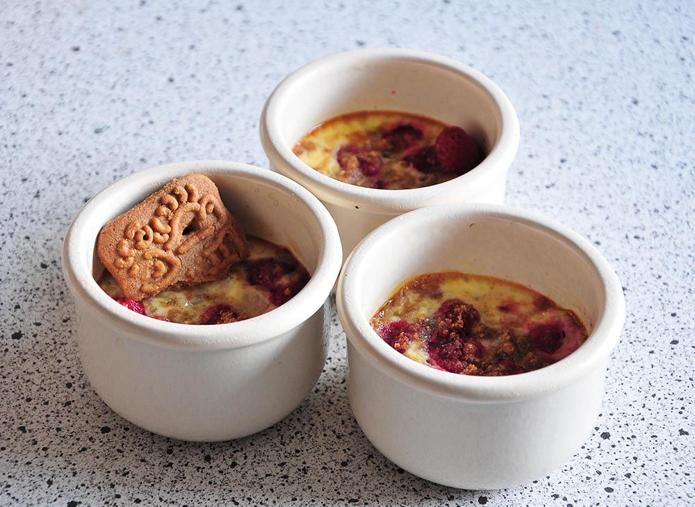 2) Répartissez les framboises dans vos ramequins, sur deux rangées d’épaisseur.