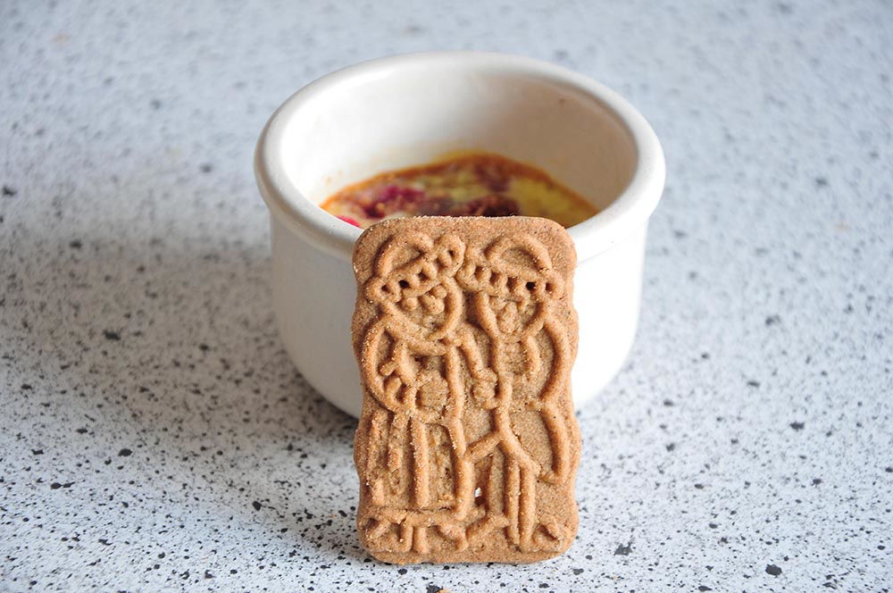 1) Réduisez les speculoos en poudre, ou à l’aide de votre robot, ou en les enveloppant dans un torchon sur lequel vous passerez votre rouleau à pâtisserie.