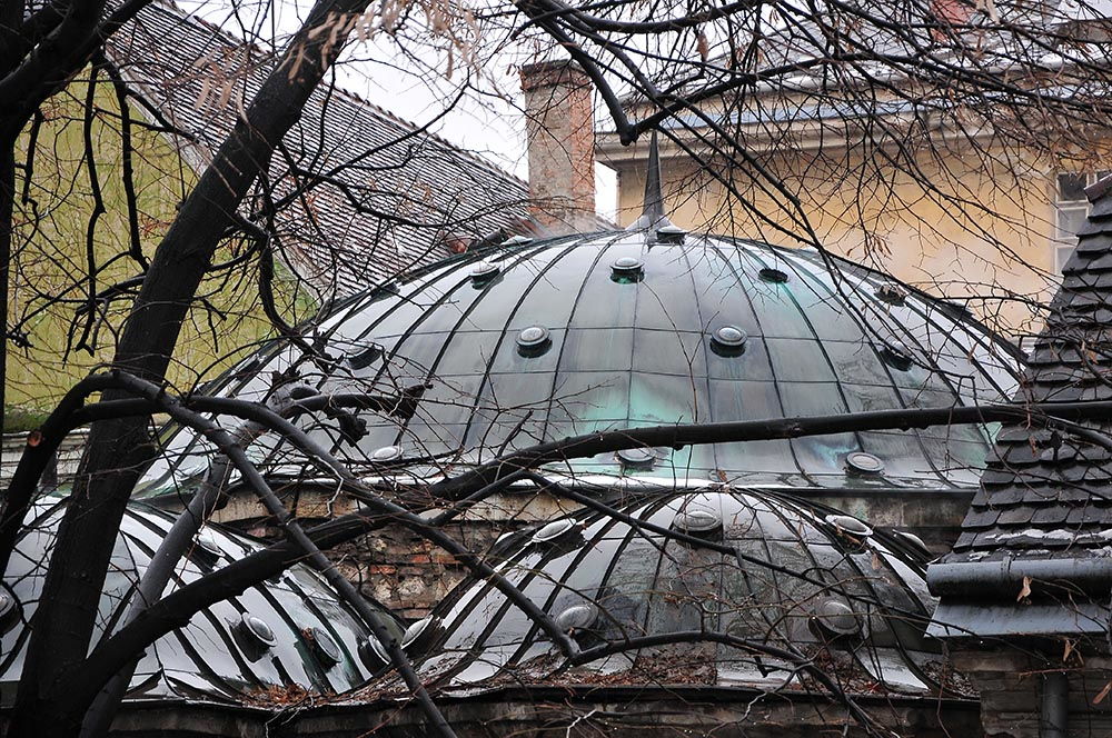Les Bains Király , un des établissements les plus anciens de la ville, et la coupole verte qui les surplombe…
