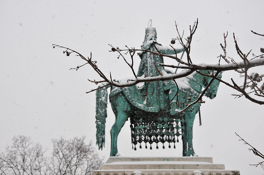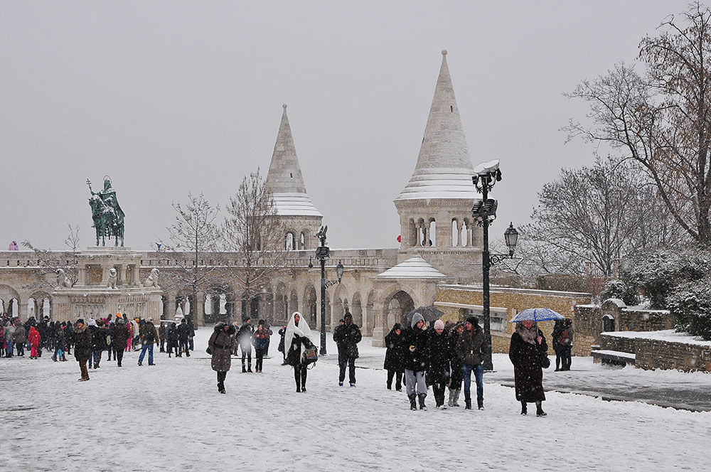 Nous avons cependant admiré à loisir les immenses étendues de brume qui nous faisaient face, en nous transformant peu à peu en bonhommes de neige. Trêve de plaisanteries, découvrir cette façade de Budapest n’était finalement pas si horrible que ça, et donnait un certain cachet à la ville si on met de côté l’ambiance « Le Jour d’Après ». Par ailleurs, en Hongrie, la survenue de quelques flocons ne sème pas la zizanie comme chez nous, 😉 Bien qu’une quinzaine de centimètres soit tombée, les voitures n’ont pas cessé de circuler sur les routes, et les employés de la ville ont courageusement déneigé et raclé les trottoirs toute la journée pour les rendre accessibles aux habitants et aux touristes.
