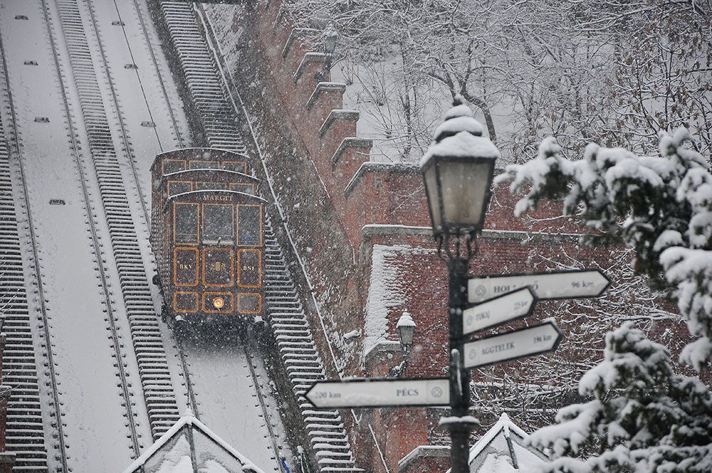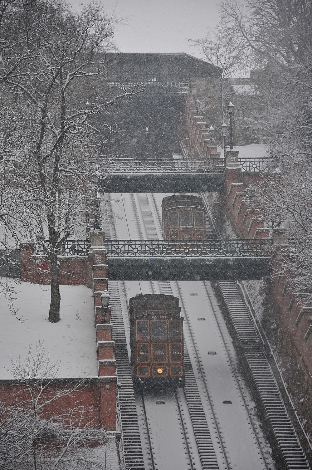 A Budapest, 2 funiculaires électriques se relaient pour amener leurs passagers aux extrémités hautes et basses de la colline.