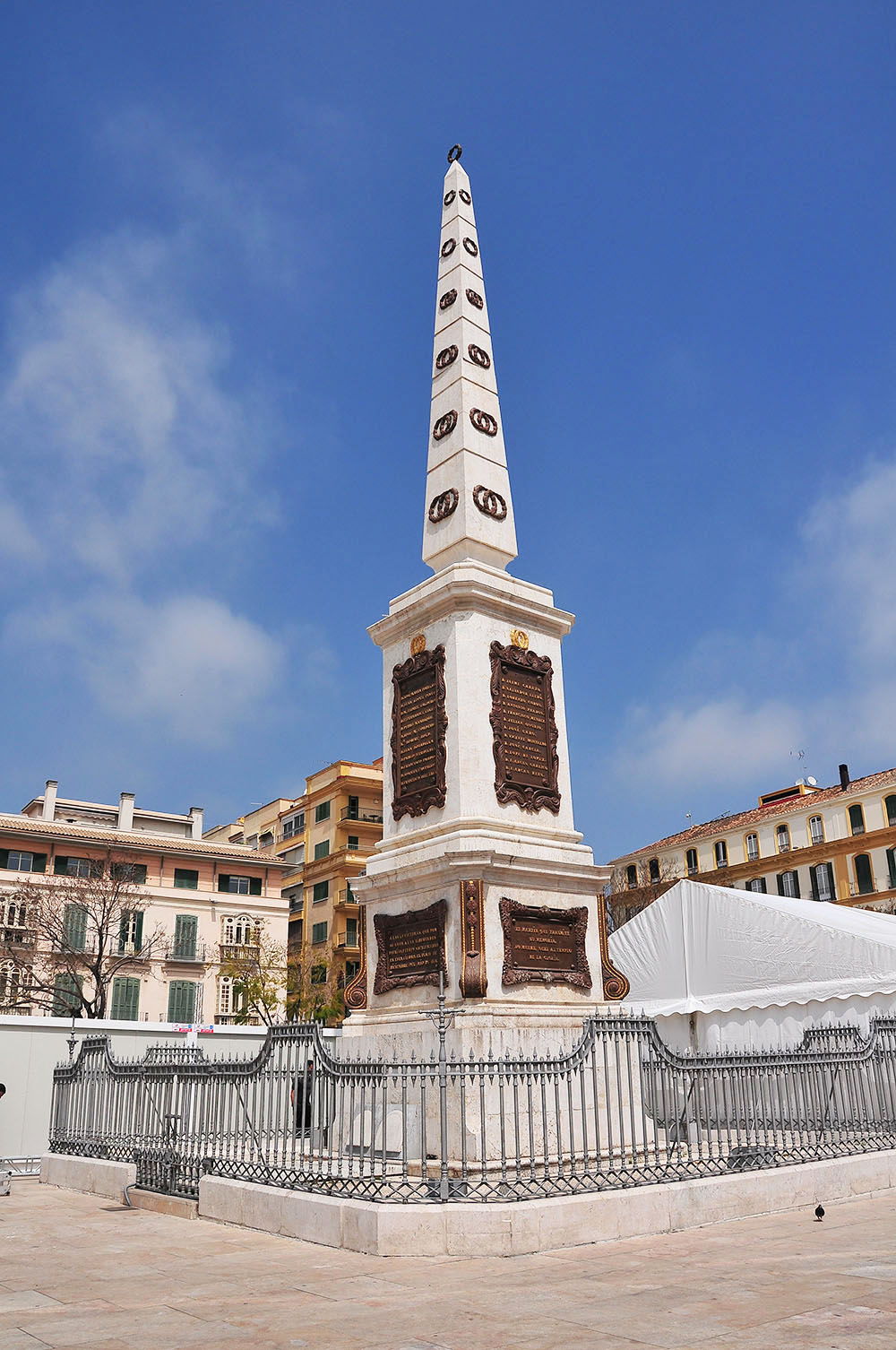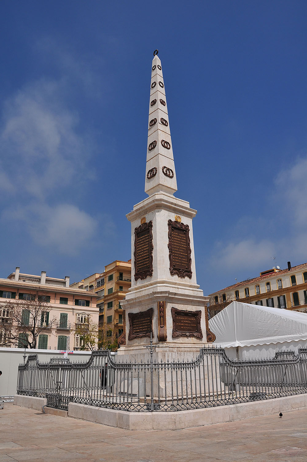 La place de la Merced n’est pas la plus agréable des places malagaises… et ne présente guère d’intérêt, sinon un obélisque en son centre, et la présence de gentils étudiants … qui m’ont prise pour une jeune journaliste. (Je n’ai pas d’explication rationnelle à ce sujet non plus, rassurez-vous !)