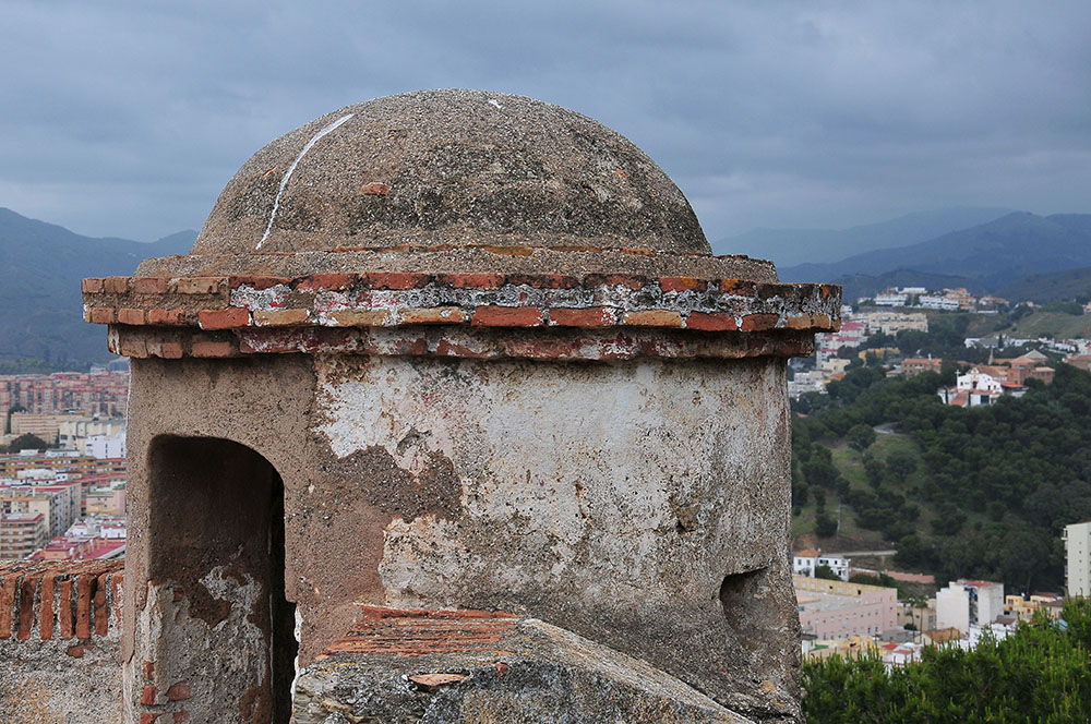 Tout comme l’Alcazaba qu’il avait pour fonction de protéger et à laquelle il est ainsi relié par une barbacane en zigzag et non pas par des tours de guet (plus coûteuses) ; le Castillo a été bâti par les maures, mais ses occupants successifs, les gouverneurs musulmans puis catholiques, y ont ensuite réalisé d’importants travaux.