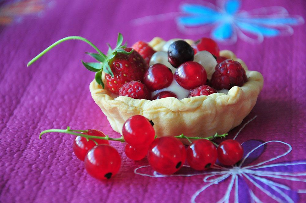 Groseilles, framboises, cerises, et fraises foisonnent dans le jardin de mes parents. Equipée de mon petit panier, je suis allée faire mon marché et ai réalisé de mignonnes petites tartelettes en me basant sur celle des tartelettes aux fraises que j’avais déjà publiée ici.