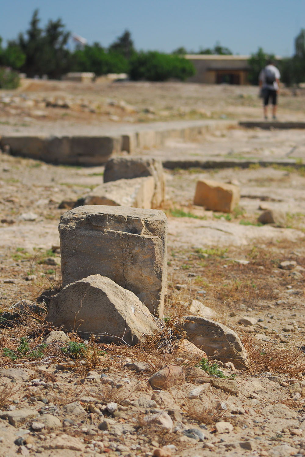 Cette zone donne envie d’être étudiée de visu, n’est-ce-pas ? (Je suis une grande amatrice de « vieilles pierres », comme certains les nomment). Eh bien, nous l’avons pourtant visitée… par hasard, et il nous a fallu faire quelques recherches à notre retour pour comprendre où nous étions allés. (Promis, je n’exagère pas !) Nous avions pris la sortie d’autoroute correspondant à un panneau pointant la « zone archéologique » de Paphos, et menant aux vestiges du sanctuaire. Nous étions quant à nous presque persuadés d’avoir atteint le dénommé site archéologique de la ville, regroupant, entre-autres, la villa de Dyonisos et la maison de Thésée. Notre visite ne correspondant guère à ce qui était indiqué dans notre guide, nous avons pris conscience de notre erreur… sans toutefois savoir où que nous nous trouvions dans le sanctuaire d’Aphrodite lui-même !