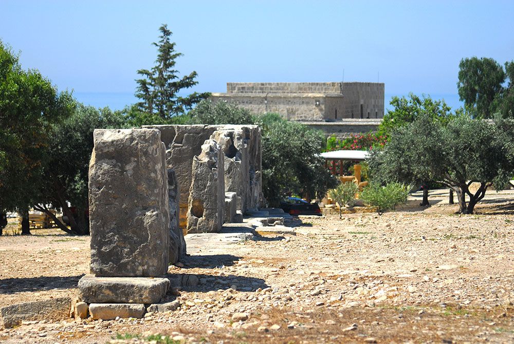 Paphos tirait autrefois ses principales ressources … du pèlerinage ! Les origines de la ville sont intimement liées à la légende d’Aphrodite. Selon cette dernière , la célèbre déesse de l’amour aurait émergé des flots à 25km à peine de Paphos, et s’y serait ensuite installée avant sa présentation sur l’Olympe. Plusieurs sanctuaires à son effigie sont disséminés sur l’ « île de l’amour », et le plus d’important d’entre eux, vous l’aurez compris, est situé à Paphos. A Palea Paphos, plus exactement . (Homère y fait même référence dans l’Odyssée !) Etait situé , du moins, puisqu’il n’en reste aujourd’hui que des ruines, des fragments de colonnes, et des pans de murs.