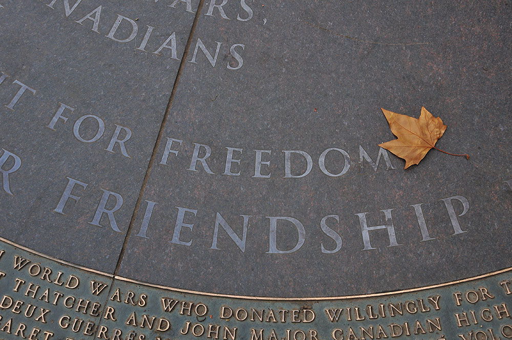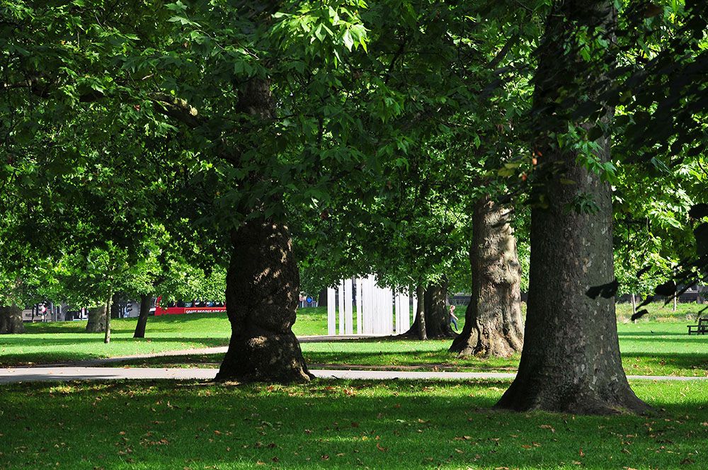 Arrêt « obligé » à Buckingham Palace. On ne s’y attarde pas : nous y avons déjà passé beaucoup de temps et avons même assisté à la relève de la garde lors de notre premier séjour. Cette fois-ci par contre, la météo est plus clémente, et non rassasiés de verdure, on explore Green Park, et on fait une halte au « Canadian War Memorial », érigé en l’honneur des Canadiens et Terre-Neuviens qui ont servi le Royaume-Uni durant la première et la seconde guerre mondiale.