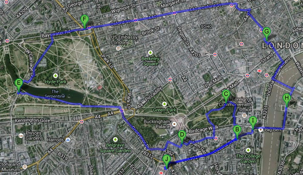 Quel programme ! Je sais pas combien de kms vous avez fait, mais apparemment beaucoup quand on voit le trajet google. Londres en un jour ! Bravo 🙂