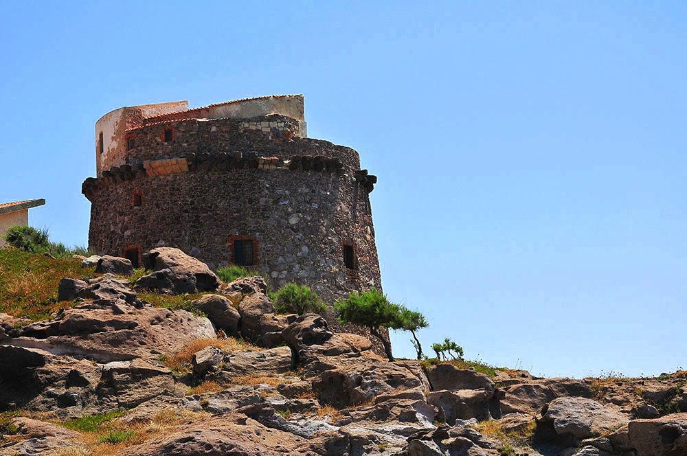 La tour espagnole, « emblème » de Portoscuso, aujourd’hui utilisée pour des expositions et manifestations importantes…