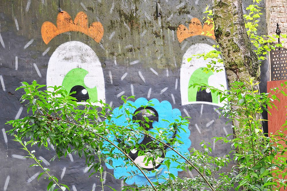 Trop chouette le street art à gand, y’en a partout et notamment de l’artiste Bué (comme la photo que tu as prise du personnage dissimulé derrière l’arbre).