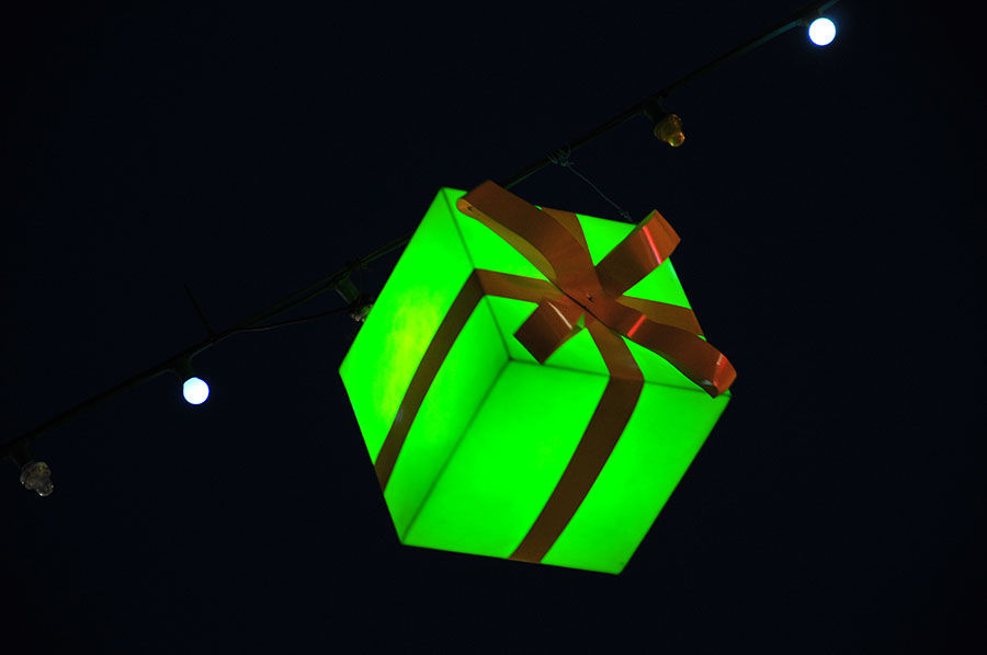 Le « thème » du marché a beau changer à chaque édition, je prête peu attention aux nouveautés, tant j’ai plaisir à redécouvrir ces éléments qui me sont familiers, ces rires d’enfants (et les sourires de leurs parents), ces senteurs gourmandes, cette grande roue illuminée comme pour ouvrir le bal des festivités (et que j’ai oubliée de photographier, oups!), et ces belles couleurs qui ornent les rues à la nuit tombée.