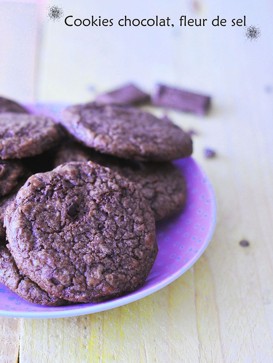 Flash-back pour une recette de cookies chocolatés testée cet hiver … (Inutile de vous rappeler ma passion pour le chocolat^^!) La fleur de sel me cependant donne mal aux dents, c’est dommage, car j’adore l’alliance du sel et du chocolat ^^
