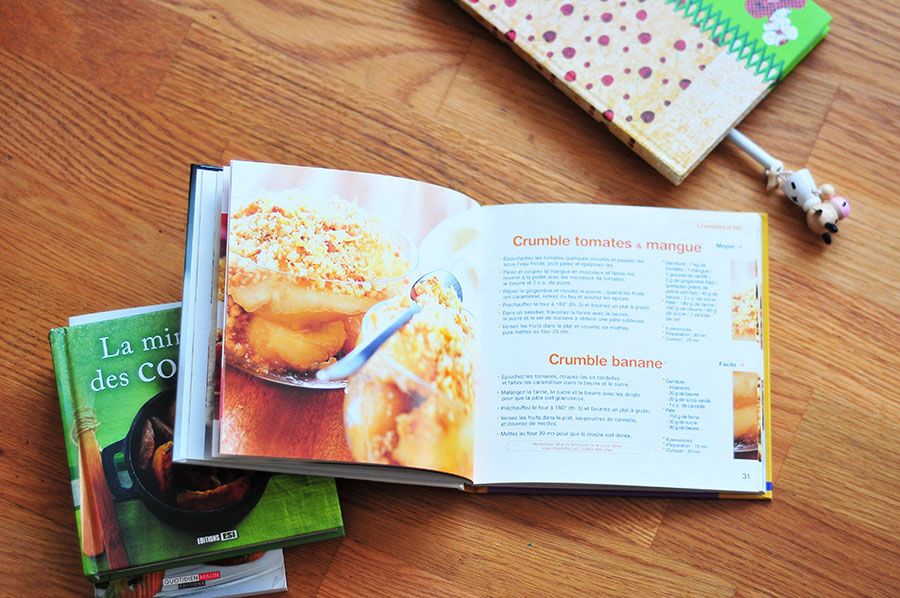 C’est bien simple, ce livre au petit format est une véritable référence pour moi. En tant qu’addict aux crumbles, je ne peux qu’être tentée par ces 70 recettes salées ou sucrées toutes plus alléchantes les unes que les autres. Toutes ne sont pas illustrées (en soit, la réalisation de crumbles n’est pas bien compliquée et ne nécessite pas foncièrement de « modèle de présentation »)… Crumble Tahiti (l’un des prochains sur ma liste !), cerises, mirabelles, fromage blanc (tentant aussi !), aux fruits secs, saumon et aneth, endives, saumon et épinards, poire et litchis, kiwis, chocolat et abricots… Tous les mélanges sont permis !