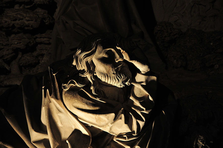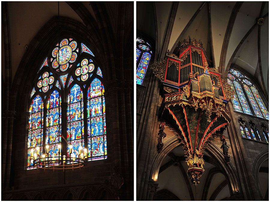 Et si la cathédrale d’Amiens est la plus vaste (promis, après j’arrête avec mon chauvinisme picard), celle de Strasbourg n’a rien à lui envier. Divisée en différents espaces, on avance de surprise en surprise dans chacun d’entre eux : tantôt on admire son bel orgue (inhabituellement situé sur le côté nord), tantôt ses vitraux dont certains sont relativement explicites, ou sa rosace imaginée et réalisée par Erwin von Steinbach, sans oublier les figurines de sa crèche napolitaine en cours de restauration ou l’impressionnante sculpture du Mont des Oliviers. Celle-ci est immense aussi ! 9m de longueur, 3,80m de largeur, et 5m de hauteur, rendez-vous compte ! Pas moins de 31 personnages y sont représentés … Pour pouvoir l’admirer, il vous faudra cependant insérer une pièce de monnaie dans une machine à sous située à côté… Le principe est un peu étrange… (Mais beaucoup de touristes n’y prêtent pas attention et paient la somme demandée, en faisant profiter les autres.)