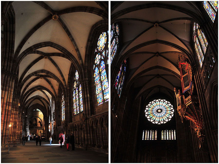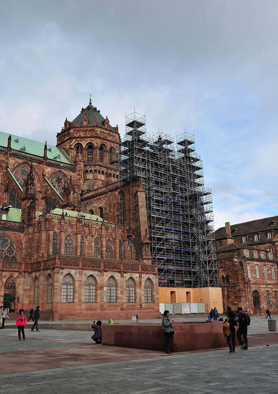 J’étais habituée à la cathédrale d’Amiens, mais celle de Strasbourg m’a semblé beaucoup plus vertigineuse. Et effectivement, près de 30m les différencient… Notre-Dame de Strasbourg culmine à 141m (contre 112 pour sa comparse amiénoise), et est ainsi la deuxième plus grande en France. Il paraîtrait même qu’on peut l’apercevoir depuis la Plaine alsacienne, ou la Forêt Noire. Jusqu’au XIXe siècle, il s’agissait même de la plus haute construction humaine au monde !