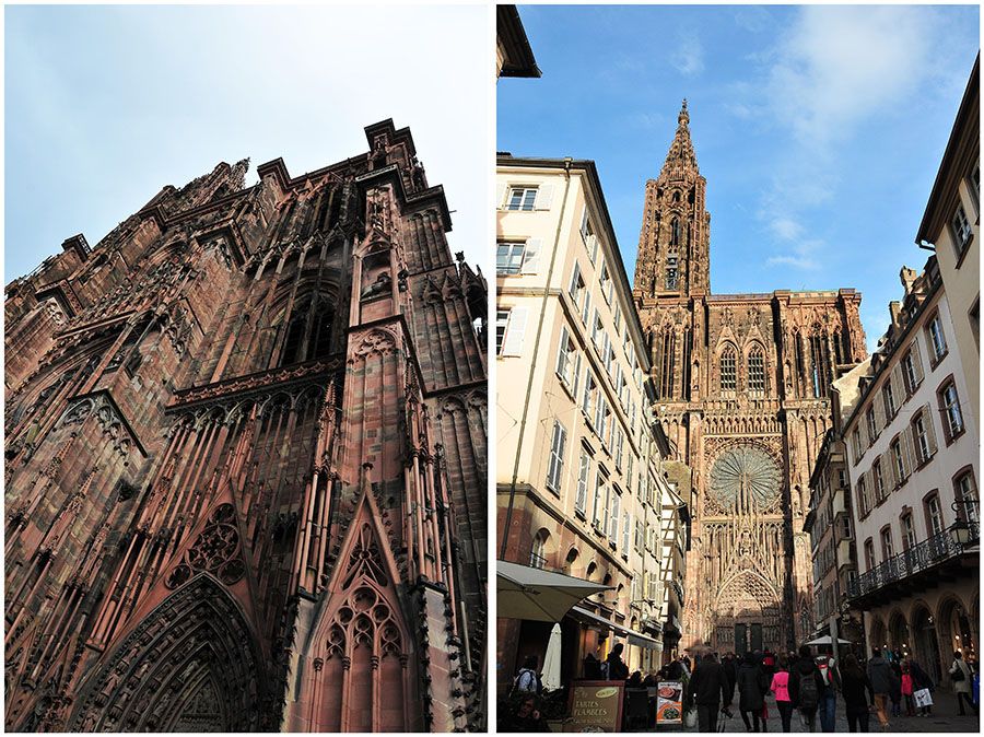 La Cathédrale Notre-Dame de Strasbourg se démarque d’une part par sa façade en grès rose, mais également par la richesse ornementale de celle-ci, tout bonnement fantastique, et qui lui vaut d’être souvent comparée à une pièce de dentelle. Les détails des sculptures si finement ciselées sont sublimes…