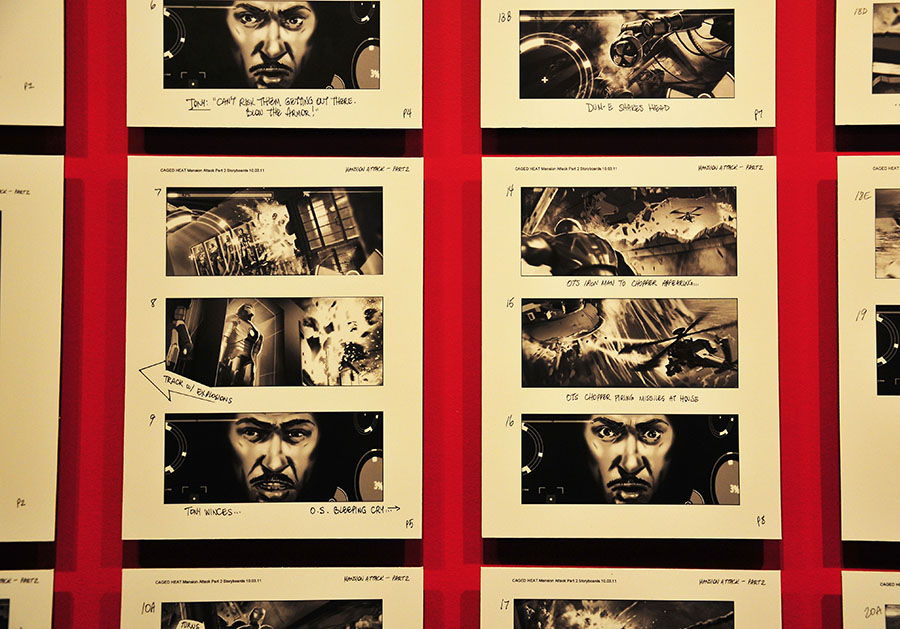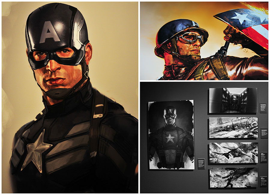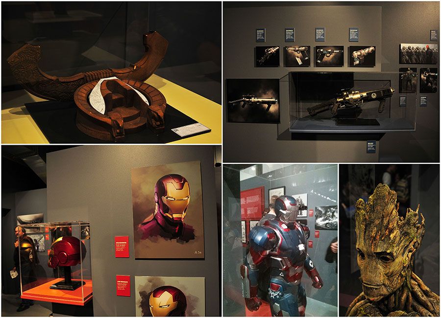 A défaut de présenter une rétrospective de la genèse des super-héros ou de présenter leurs spécificités, l’exposition revient sur l’évolution de leurs traits graphiques et de leur adaptation sur grand écran. Secrets de production, accessoires utilisés dans les différents films, peintures de pré-production et story boards ouvrent la voie des coulisses de la réalisation de ces blockbusters. Du bouclier de Captain America, au casque d’Iron-Man, en passant par le marteau de Thor, ou les costumes des Avengers, on en prend plein la vue… et « en vrai« ! Petits et grands y trouvent leur compte et s’extasient devant ces pièces-maîtresses du tournage. Un espace est d’ailleurs dédié aux futurs Gardiens de la Galaxie, qui ne sortira pas avant le 13 août prochain.