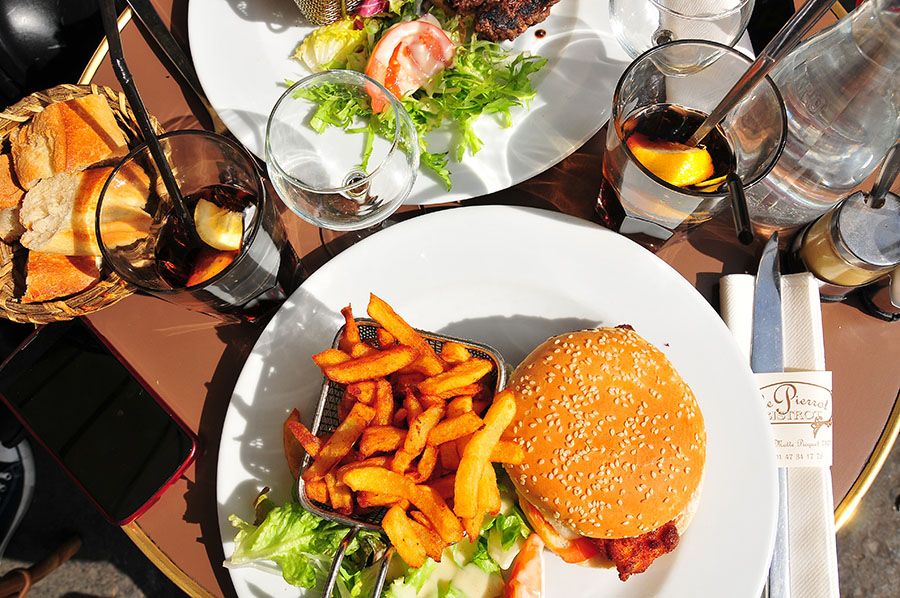 L’heure tournant, et nos ventres étant de plus en plus mécontents, nous nous sommes alors rabattus sur le café Le Pierrot, son nom avenant et ses clients croquant dans des burgers appétissants.