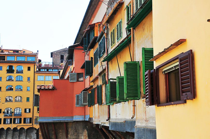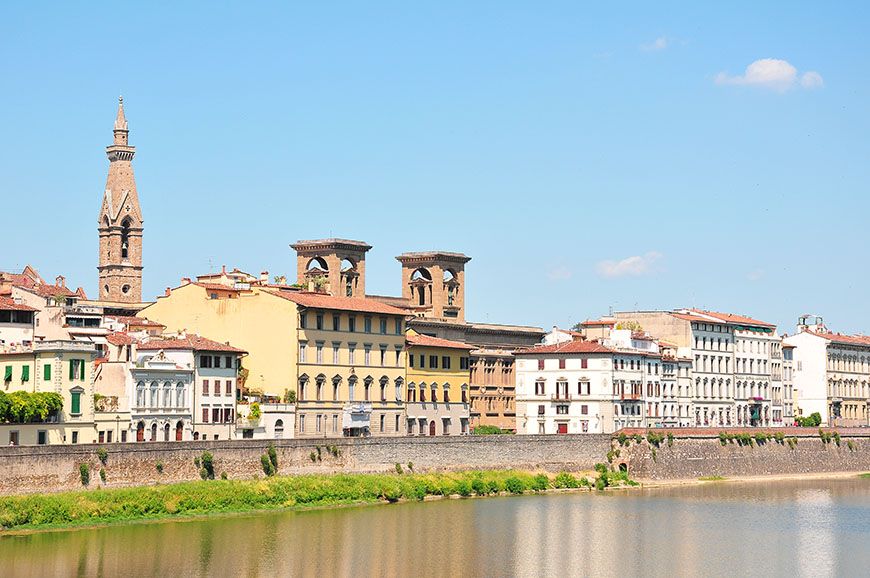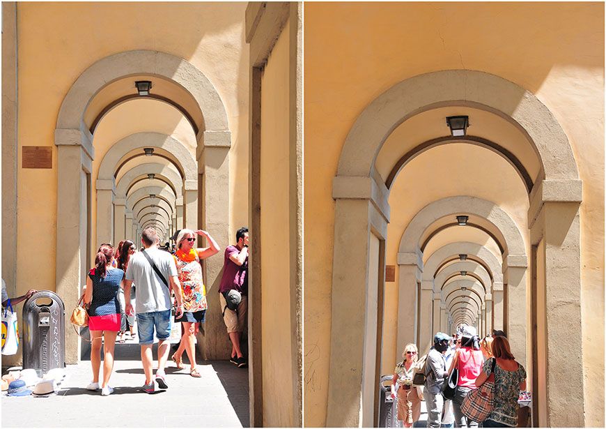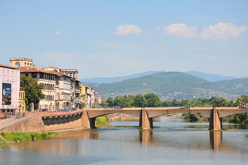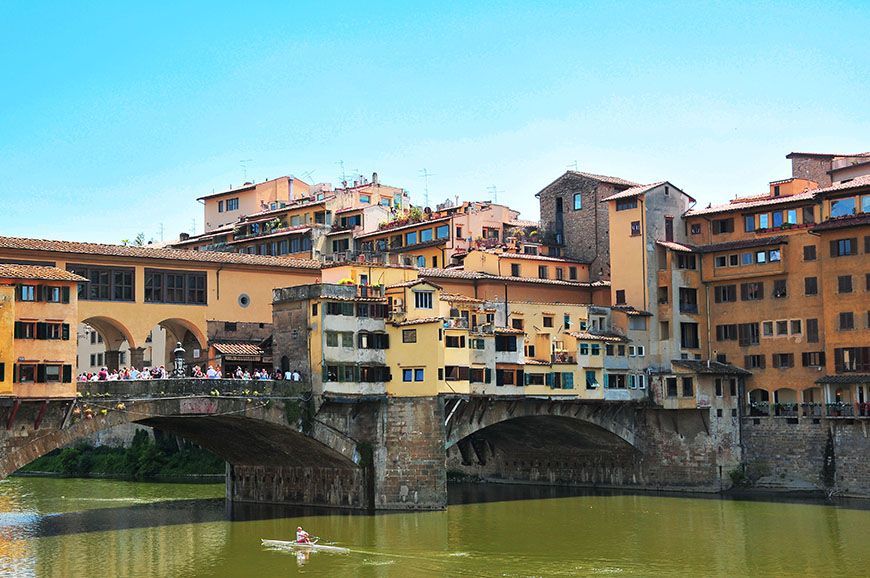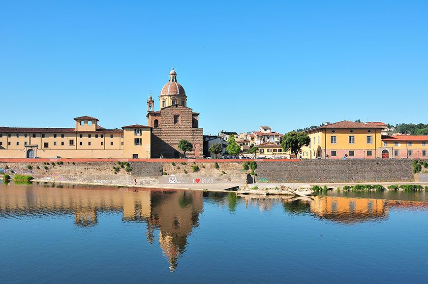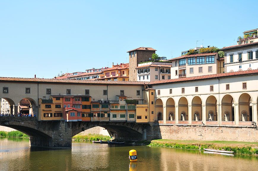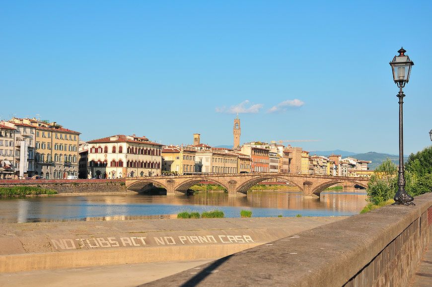 Seuls quelques ponts (édifiés au Moyen-Âge, tout de même) permettent de passer d’un lungarno à l’autre. Car finalement, nul besoin d’attraction quand on sait que le Ponte Vecchio draine à lui seul 90% des visiteurs du quartier, au détriment des voies bordées d’églises, de ruelles, de vespas, et de jolies façades colorées ; quelques peu délaissées! Dommage ! N’hésitez pas à longer le fleuve, même si la marche vous rebute, le jeu en vaut la chandelle^^…
