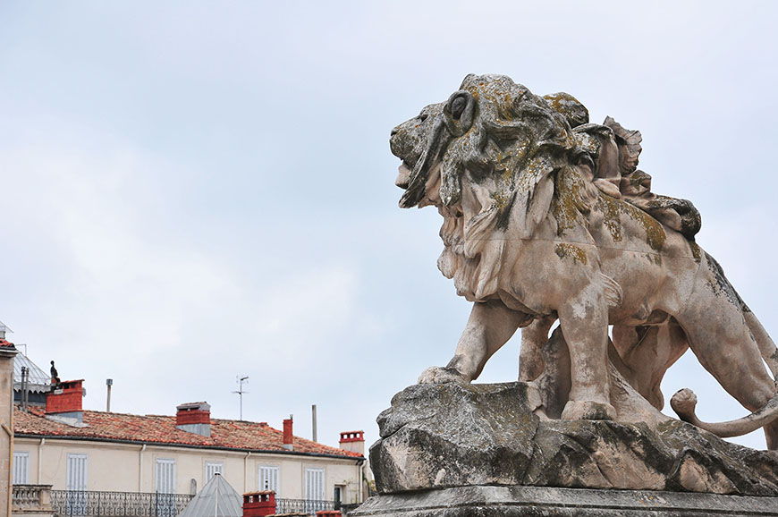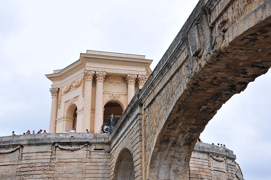 L’aqueduc des Arceaux, inspiré par le pont du Gard, qui alimente la ville depuis les sources Saint-Clément..
