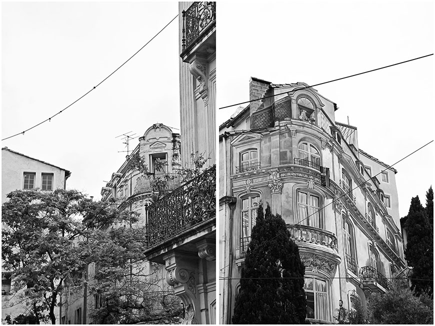 Bref. J’avais grand besoin de me détendre durant ces vacances, et, fait exceptionnel, j’ai moins dégainé mon appareil photo que de coutume. Nous nous sommes beaucoup baladées dans le centre-ville de Montpellier, sans d’autre but précis que de trouver un marchand de glaces, le bowling ou le cinéma^^ Je me suis laissée guider, et je crois bien que je serais incapable de me repérer seule dans Montpellier si j’y retournais à nouveau, haha^^ Dire que j’ai eu un gros coup de coeur pour la ville serait mentir. Ses rues fleuries et colorées , ses places ombragées , son centre-ville animé sont agréables.. mais je n’y suis pas restée assez longtemps pour l’apprécier pleinement, et beaucoup de nos plans sont tombés à l’eau à cause de la pluie (guère engageante lors d’une sortie à la plage^^) ou de l’orage (le soir des estivales…!) Montpellier se découvre au hasard des pas, les yeux tournés vers ses façades …