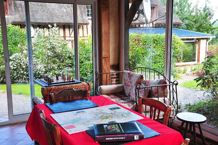 Isabelle et Christian, les propriétaires de l’établissement, ont eu un véritable coup de cœur pour la région du marais Vernier, et s’y sont installés il y a quelques années, se lançant dans le projet fou de déplacer un ancien pressoir du Calvados sur le terrain « vague » qu’ils venaient d’acheter. Sur place, vous pourrez feuilleter le livre-photo retraçant cette ambitieuse épopée qu’Isabelle a réalisé. Le tout est assez impressionnant, puisque petits et grands se sont mis à la tâche pour réhabiliter cette sublime chaumière, brique par brique, pavé par pavé…