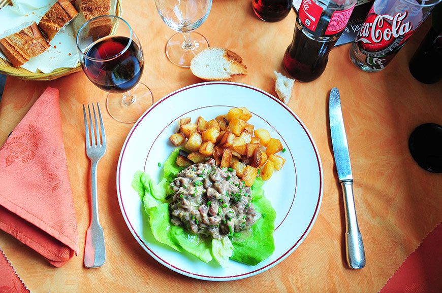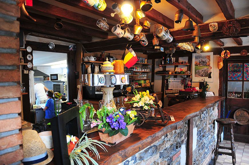 - L’Auberge de l’Estampage (Le Village, 27680 Marais Vernier) revendique sa cuisine traditionnelle à base de produits du terroir . Ayant eu le malheur de commander un plat à base d’oignons (moi qui déteste cela ! #pasdouée) ce soir-là, je serais en fait incapable de vous formuler un avis très objectif sur la carte^^ L’ambiance est cependant très typique, avec une décoration qui nous plonge en plein cœur de la campagne, au travers une collection de photos d’autrefois sur la vie du village, les courses cyclistes…