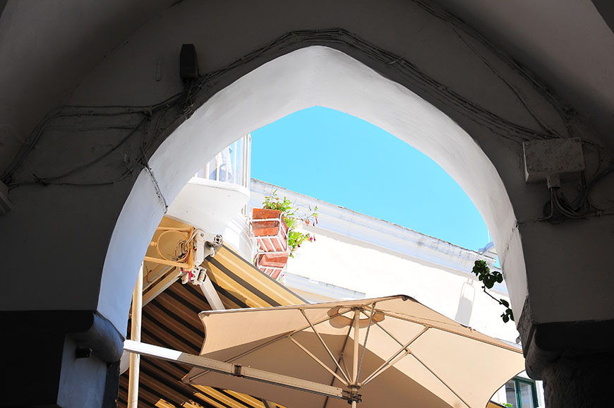 Chose que nous avons pu constater tout au long de la journée, puisque dépourvus de plan (tant qu’à faire), nous avons erré au fil des rues ruelles escarpées, guidés par le hasard et par mon (excellente haha) intuition féminine… Nous ne nous sommes pas rendus à Anacapri, l’adorable petite commune que vous avez peut-être déjà admirée sur d’autres blogs, nous n’avons pas bu de café sur la « piazzetta » (ou place Umberto I), nous avons ignoré les boutiques de luxe qui l’avoisinent, nous n’avons pas marché ou emprunté un des bus qui mènent vers la Grotta Azzura ou pénétré dans une quelconque église…