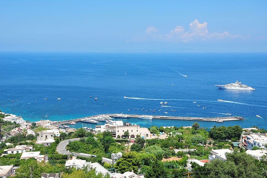 En fait, je pensais sincèrement ne pas aimer Capri. J’y allais, empreinte de tous les préjugés qui circulent à son sujet : Hervé Vilard, la masse de touristes, les boutiques , le côté surfait… Je n’avais d’ailleurs pas initialement prévu d’y faire un détour lors de mon week- end à Naples… Mon père a je-ne-sais-comment réussi à me convaincre de débourser 45 euros (l’aller-retour) pour emprunter l’hydroglisseur qui permet d’accéder à ce tout petit bout de terre situé au large de la baie de Naples. Des ferrys assurent également la liaison entre l’île et Naples : le temps de trajet est plus long, mais le coût un peu moins onéreux.