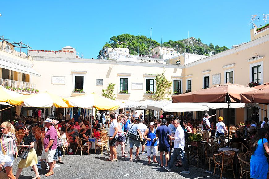 Bref, de ce fait, nous sommes arrivés un peu désorientés à Capri, sans plan ou but précis, si ce n’est de nous attabler au premier restaurant venu. (Il était 10h30, oui. Mais le réveil à 2h y était peut-être pour quelque chose^^)