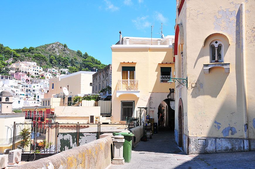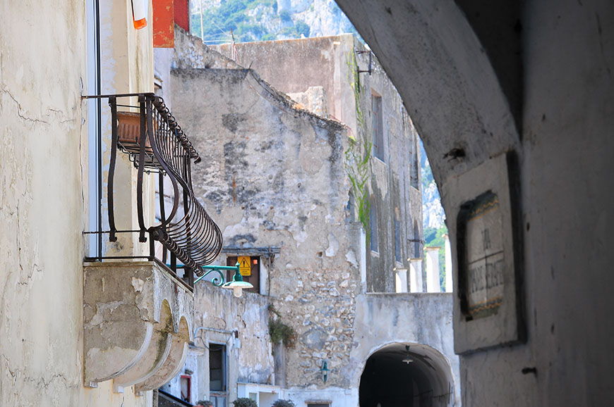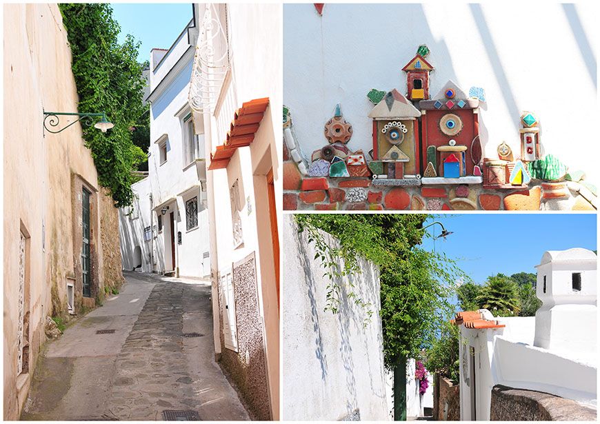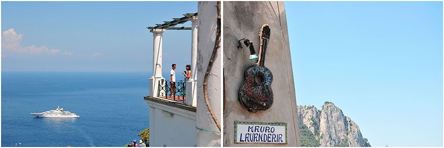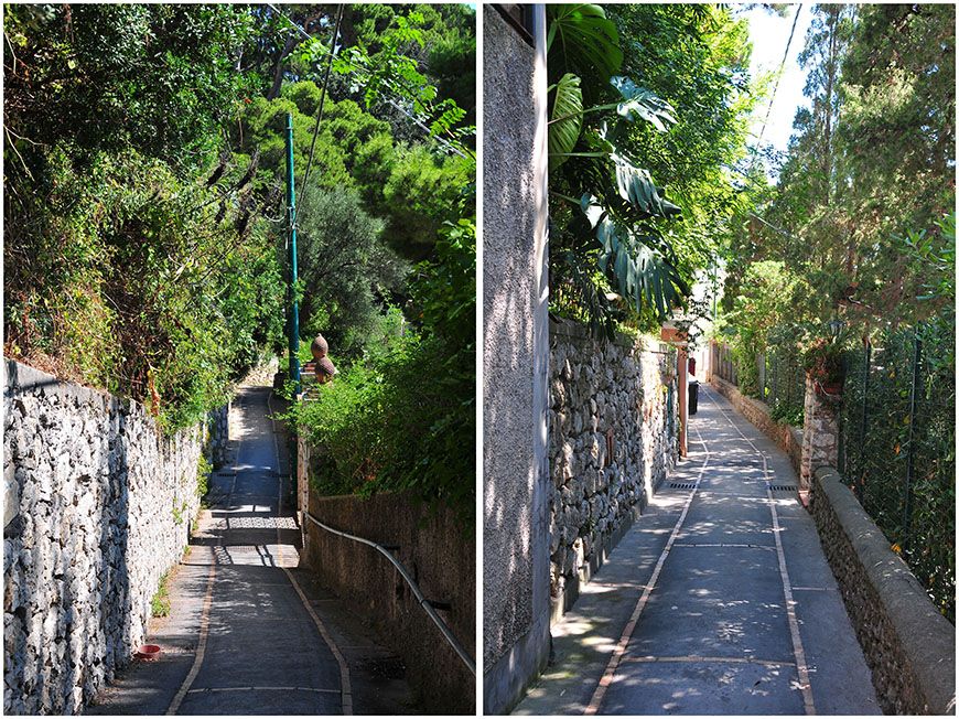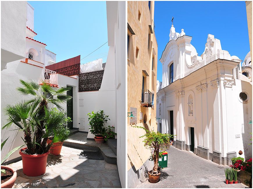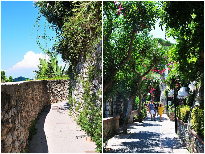 C’est lors de cette première balade que j’ai oublié mes préjugés et radicalement changé de position vis-à-vis de Capri. Nous nous sommes retrouvés dans des petites ruelles désertes, puisque, eh oui, les touristes sensés (et moins sensés) empruntent tous le funiculaire… et avons pu admirer les jolies demeures fleuries et colorées qu’occupent paisiblement les locaux. Car en-dehors du tourisme, il y a effectivement une vie à Capri… Ce qu’on aurait tendance à oublier^^