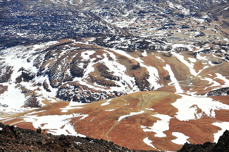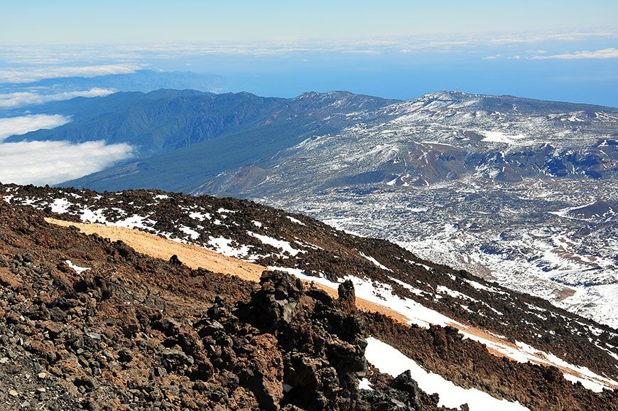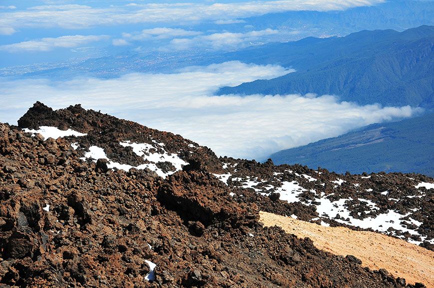 C’était la première fois que « j’allais à la montagne » ^^, et que je côtoyais de si près les nuages… De là, plusieurs sentiers de randonnée s’offrent à vous, que j’étais impatiente de sillonner ! Pas de chance, la météo en avait décidé autrement… Ces derniers, encore gelés, n’étaient pas accessibles … Pour une fois, j’avais pourtant fait preuve d’organisation en réservant quelques semaines plus tôt un permis d’accès au cratère… Ce dernier est obligatoire pour randonner au sommet du Teide, mais les formalités pour l’obtenir ne sont pas très compliquées. Il vous suffit de remplir un formulaire sur ce site , en renseignant votre nom, votre prénom, et votre numéro de carte d’identité. Cependant, mieux vaut faire votre demande avec un peu d’avance, puisque ce visa est valable pour une date donnée et une tranche horaire de 2 heures…