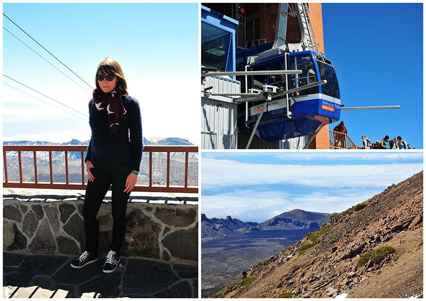En à peine 8min, nous voilà conduites de la base du Teide à l’altitude de 3 550 m ^^ Wow ! Là-haut, le panorama est plus que spectaculaire et plus que saisissant : j’en suis restée sans voix (venant de moi, c’est dire…), telle une enfant émerveillée.