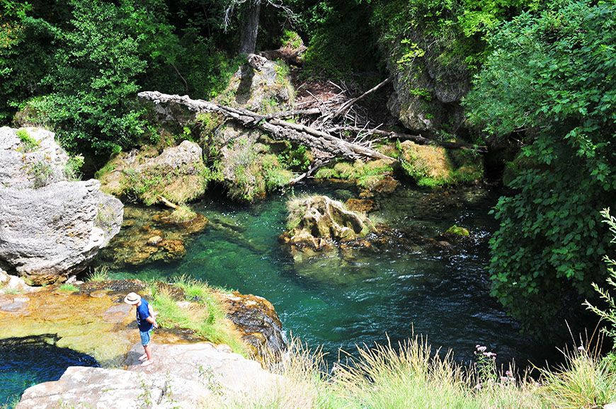 Il est possible de se baigner au niveau de la Résurgence de la Vis, au pied de la petite cascade… L’eau est très froide pour les petites natures comme moi… Mais enfilez votre maillot de bain avant le départ, sait-on jamais !