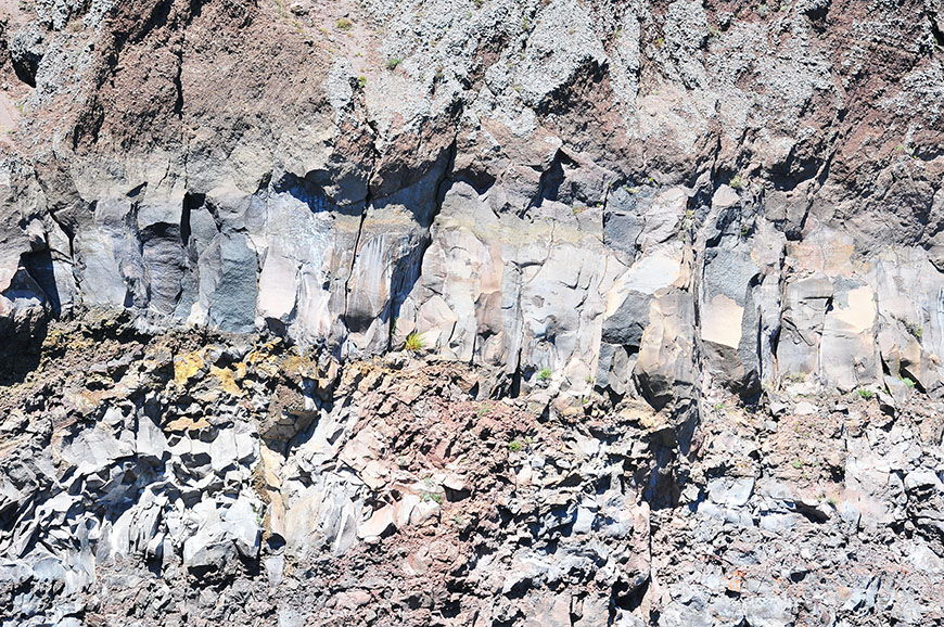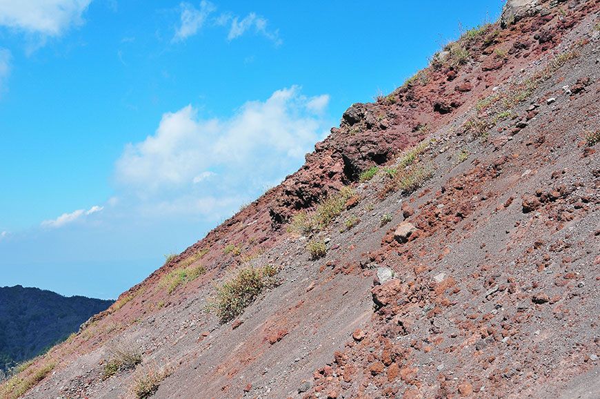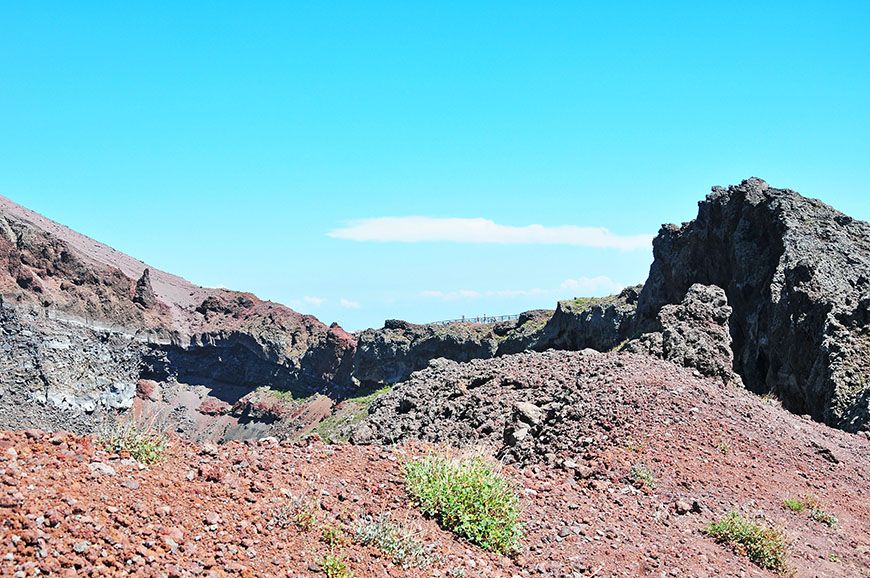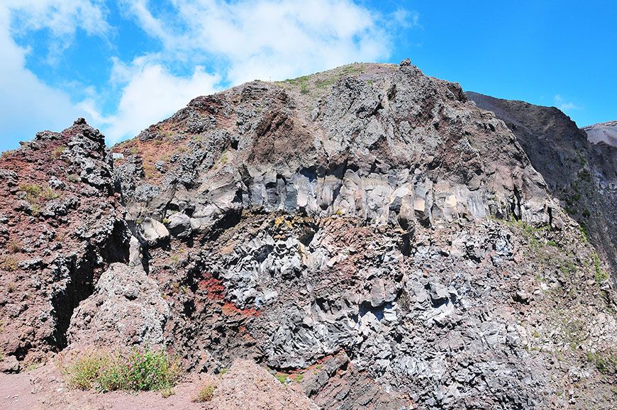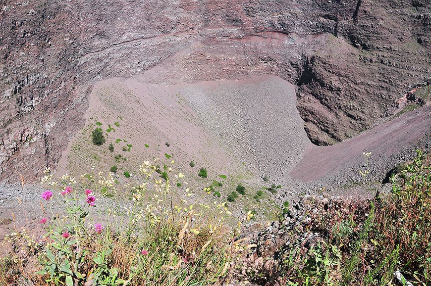 Les vues sur la baie de Naples et ses alentours sont à couper le souffle (et pas seulement parce que j’étais essouflée !) , le panorama sublime et paisiblement trompeur quand on prend conscience de l’odeur de souffre qui émane de ce cratère endormi , d’où s’échappent des fumerolles. J’avais lu avant mon départ que le Vésuve, fidèle à l’image que l’on a de Naples, était jonché de déchets… Personnellement, je n’en ai pas vu lors de notre visite, comme vous pouvez le constater sur mes quelques photographies…