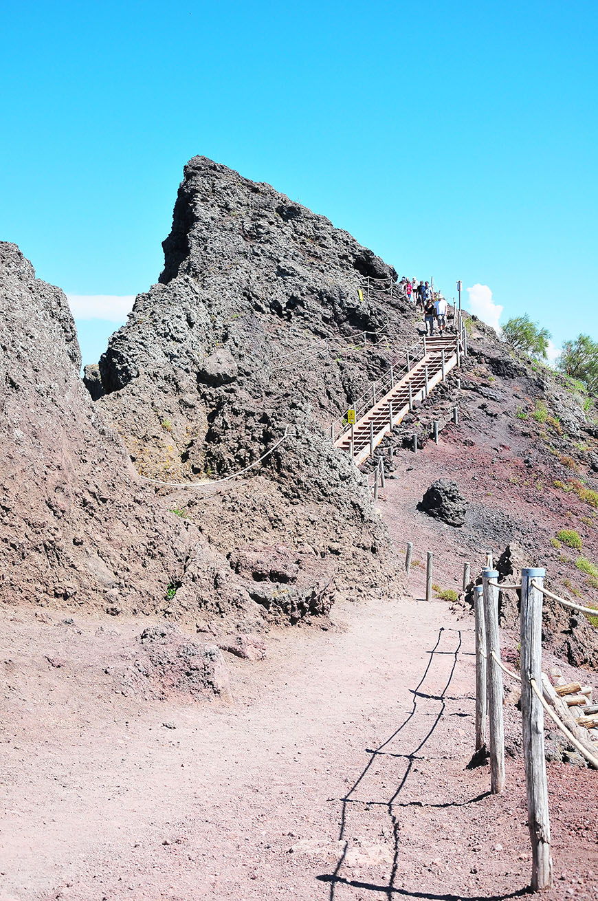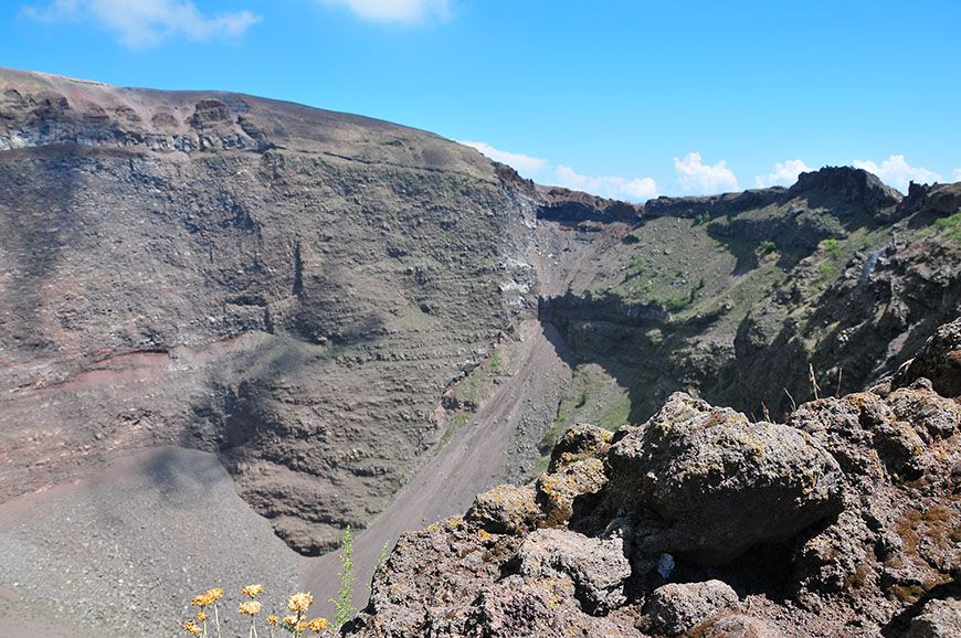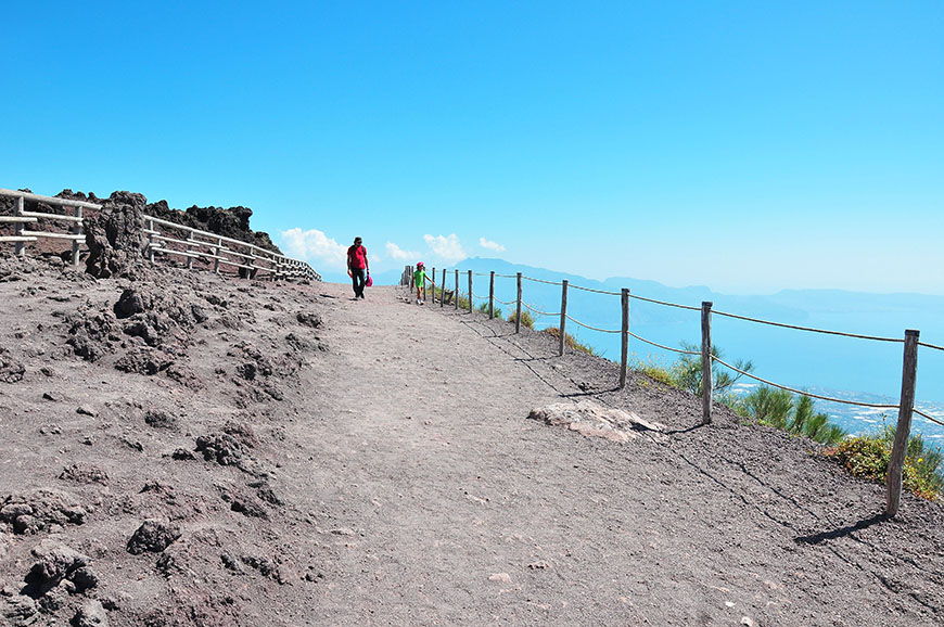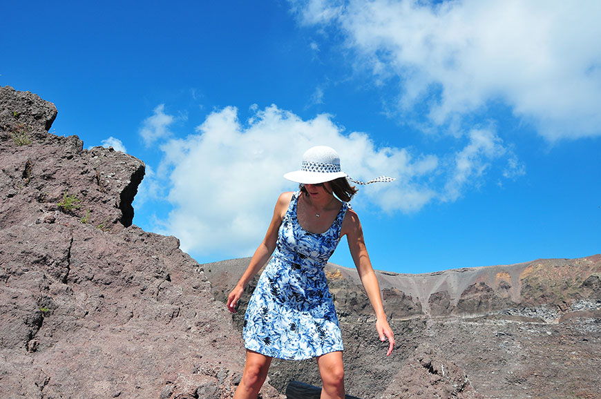 Je pense qu’il est inutile de s’attarder sur la présentation de celui qui appartient au groupe très sélect des volcans les plus célèbres du monde… Ce volcan de près de 1300m, aujourd’hui en sommeil, est notamment à l’origine de l’ensevelissement de Pompéi et Herculanum en l’an 79… Depuis, il est à nouveau entré une trentaine de fois en éruption (la dernière remonte à 1944) et a inspiré nombre de récits et de légendes…