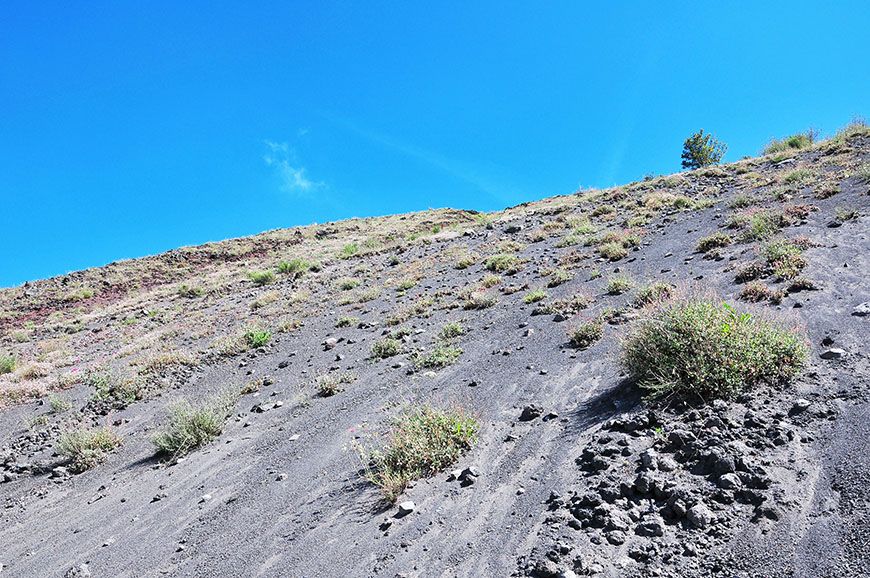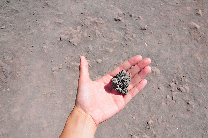 Nous avons d’abord suivi une petite route sinueuse, au milieu de collines douces et fleuries. Le chauffeur s’est même arrêté un instant pour nous laisser profiter un peu de la vue… Nous avons alors repris notre ascension…Peu à peu, la végétation s’est raréfiée, la couleur de la terre a changé … Le volcan se laissait deviner … Nous étions arrivés.