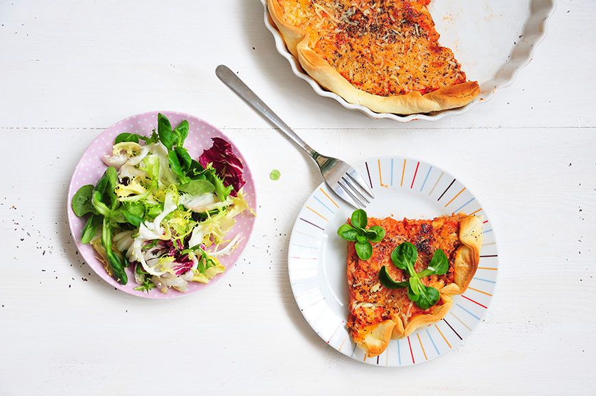 Pendant les vacances, je mange souvent chez mes parents le midi, et j’en profite pour tester avec eux quelques recettes de quiches et autres tartes salées, rapides et faciles à préparer . 🙂