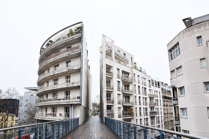 Ces deux voies sont intégrées au lotissement « La Campagne à Paris », qui n’aurait pas pu mieux porter son nom. Pour accéder ce petit quartier surélevé situé au Nord-Est de Paris, à deux pas du périphérique et de la porte de Bagnolet, il vous faudra retrousser vos manches et emprunter l’un des escaliers qui l’entourent. (Allez, un peu de sport ne fait de mal à personne… Par contre, bannissez les talons et les poussettes, haha !) Seules quelques voitures y sont stationnées, appartenant très probablement aux résidents du quartier. Organisé à l’origine en coopérative, ce dernier permettait de répondre à la crise du logement qui touchait le pays au début des années 20, et de permettre à la classe ouvrière d’accéder à une centaine de pavillons construits pour eux.