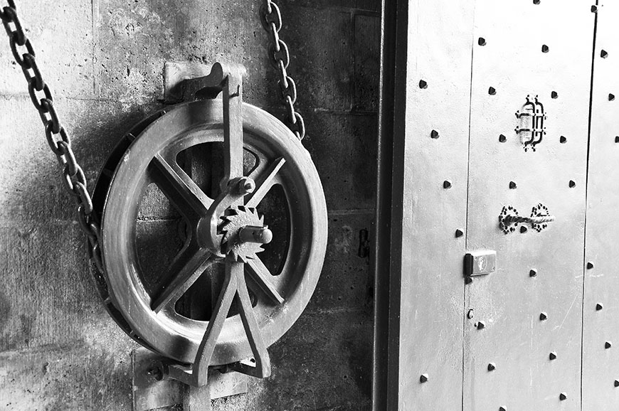 Je dirai le mécanisme qui sert à ouvrir et fermer la lourde porte à droite de la photo 😉