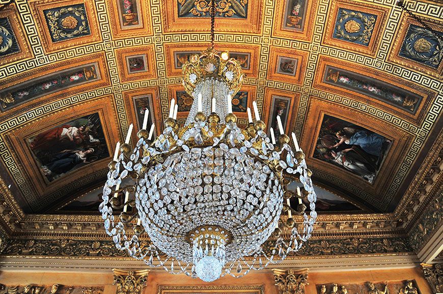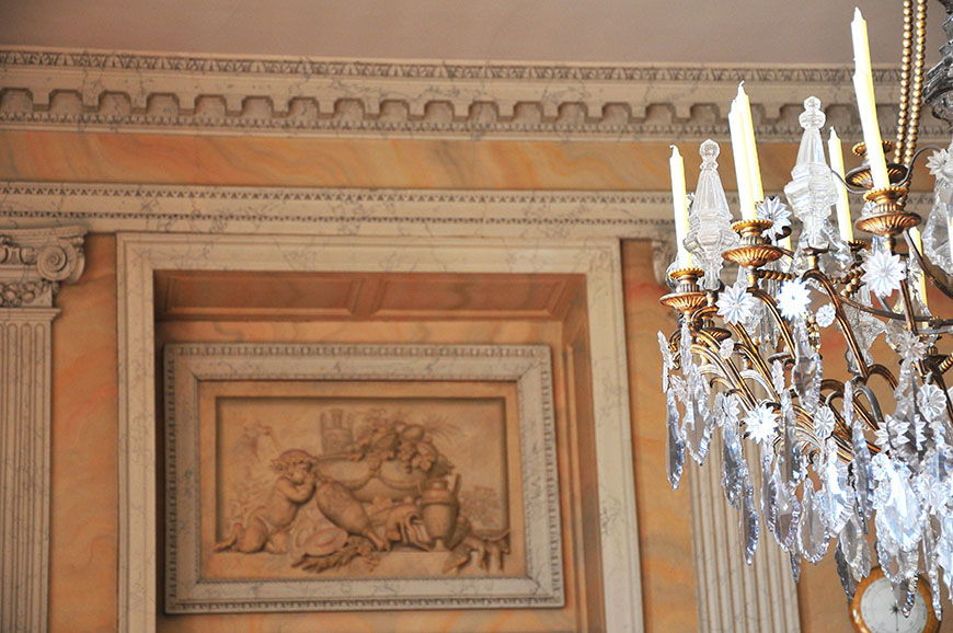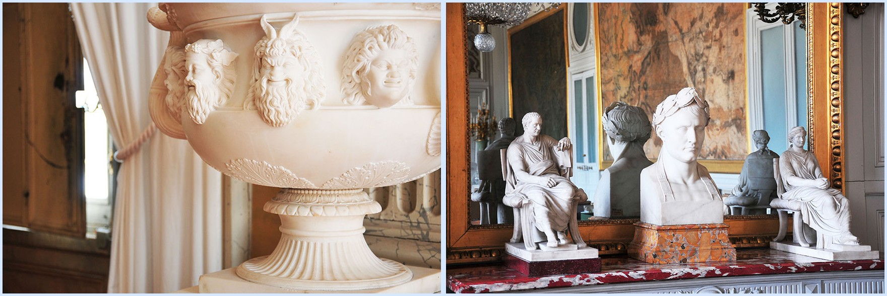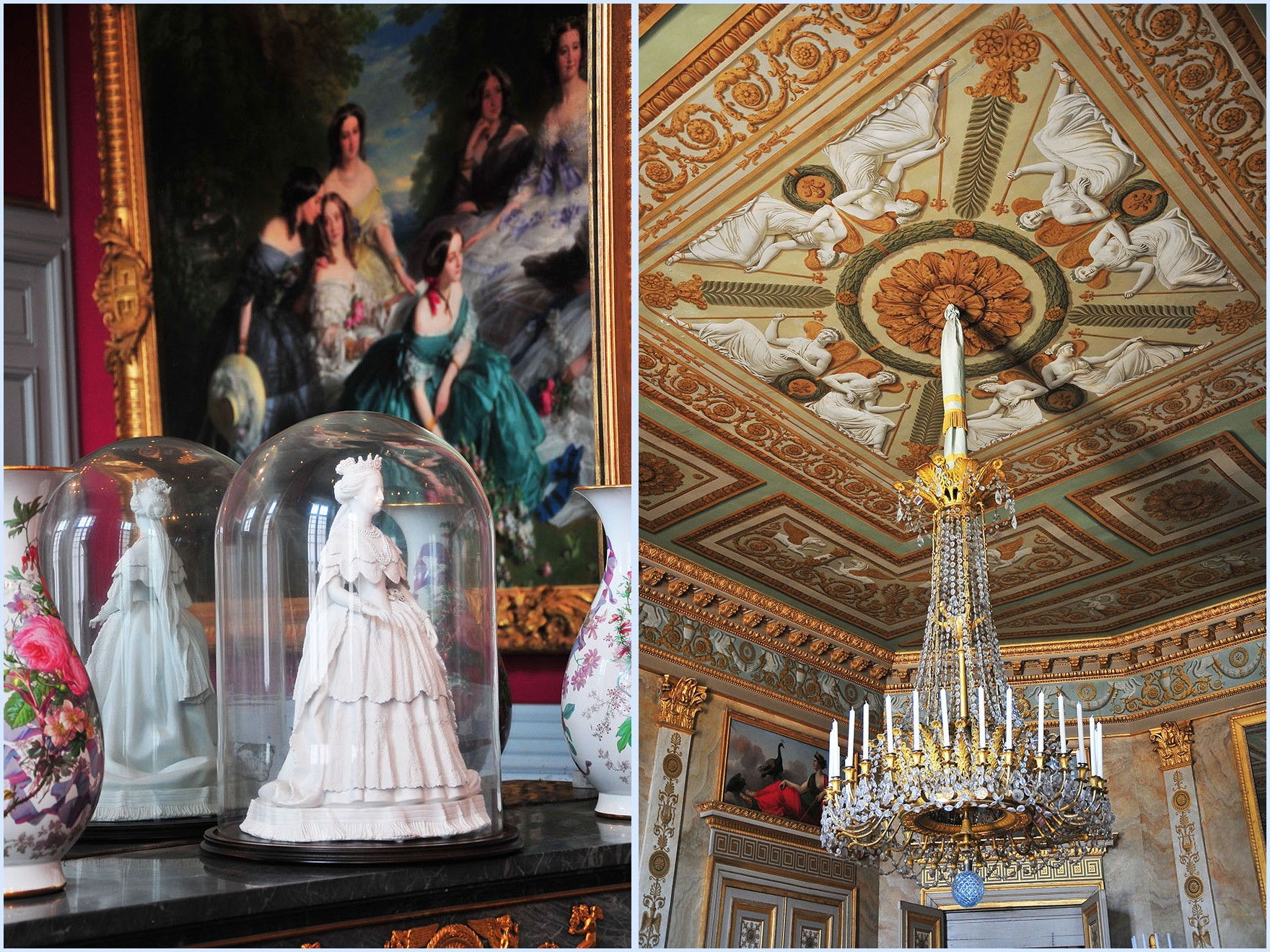 Il y a tant de pièces dans ce labyrinthe que la visite semble n’en plus finir, et dans chacune d’entre elles, faste et luxe semblent avoir été les mots d’ordre! Tissus, médaillons, dorures, tentures (admirables dans la Galere des Chasses), peintures décoratives, plafonds peints en sont le signe! (Quid de la sobriété des façades extérieures^^!