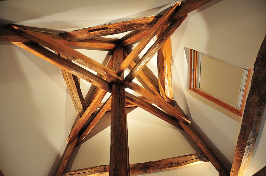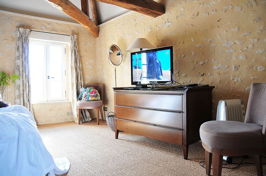 Avec ces petites poutres, ces jolies couleurs… et ce lit très confortable 😀 La chambre est au top!