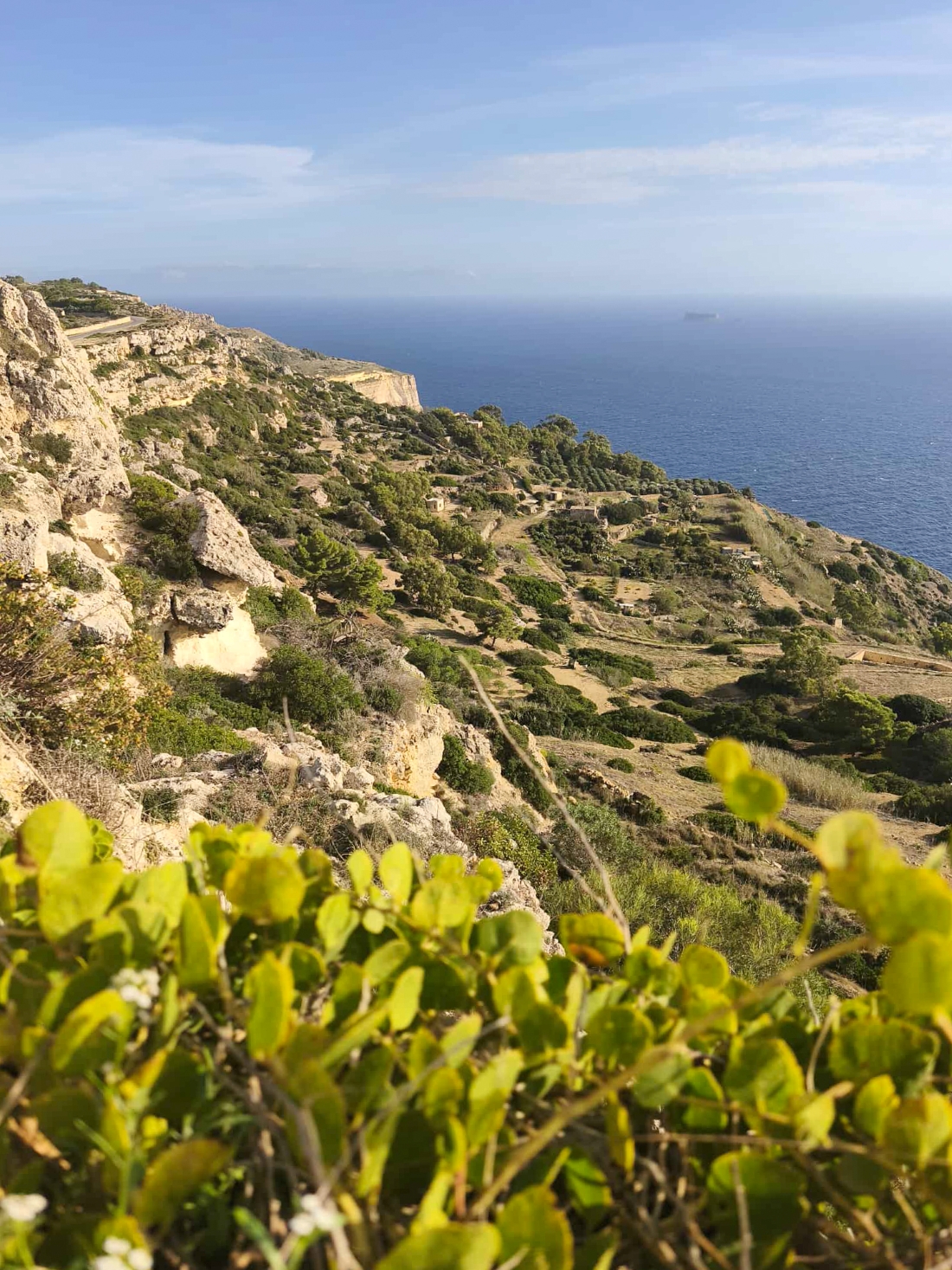 Le sentier longe les falaises sculptées par le vent. Les plages dorées et les criques presque secrètes se dévoilent au fil de la randonnée. Je n’étais pas prête, et j’en ai pris plein la vue, notamment en m’engageant vers Qarraba Bay : l’argile descend doucement vers la mer, la lumière s’y accroche comme dans un rêve. Tout semble suspendu, silencieux, figé, un moment hors du temps. Malgré mes difficultés à m’extraire du lit ce matin-là, cette petite randonnée en solitaire a été une incroyable bouffée d’oxygène, une immersion totale dans la nature sauvage et préservée de Malte.