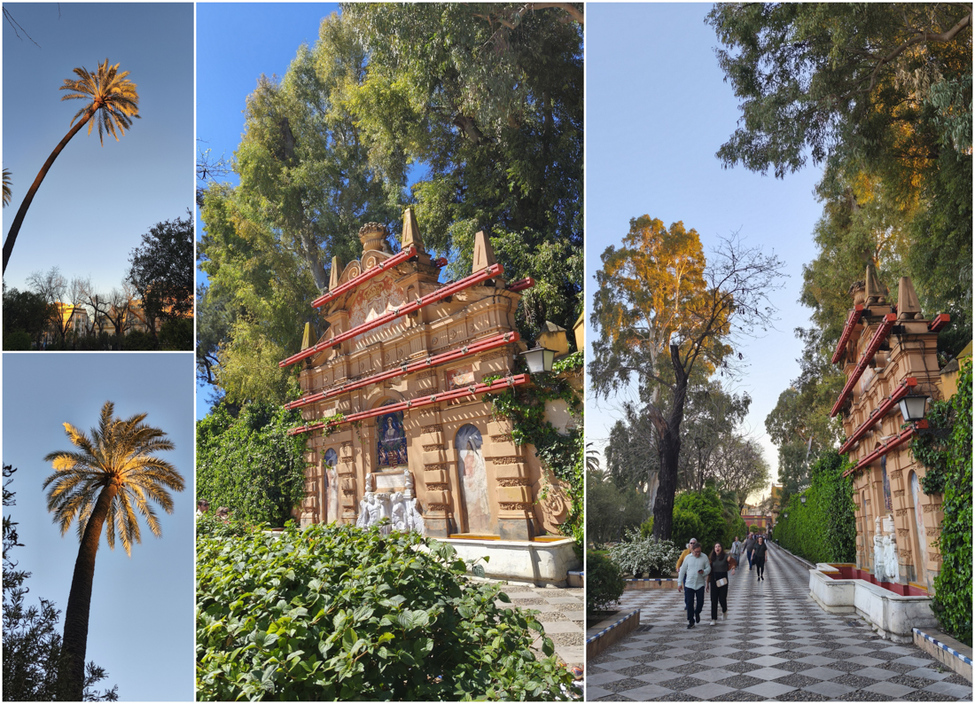 Un vaste parc ombragé, parfait pour se balader ou faire du vélo. Fontaines, bancs en céramique, palmiers… un endroit où l’on peut ralentir, respirer, et presque oublier qu’on est en ville. Pour moi, c’est l’un de mes lieux préférés à Séville. Je me souviens encore des siestes de ma mère ici, il y a dix ans, bercées par le chant des oiseaux et le parfum des fleurs. Au printemps, le parc est particulièrement chatoyant, presque magique.
