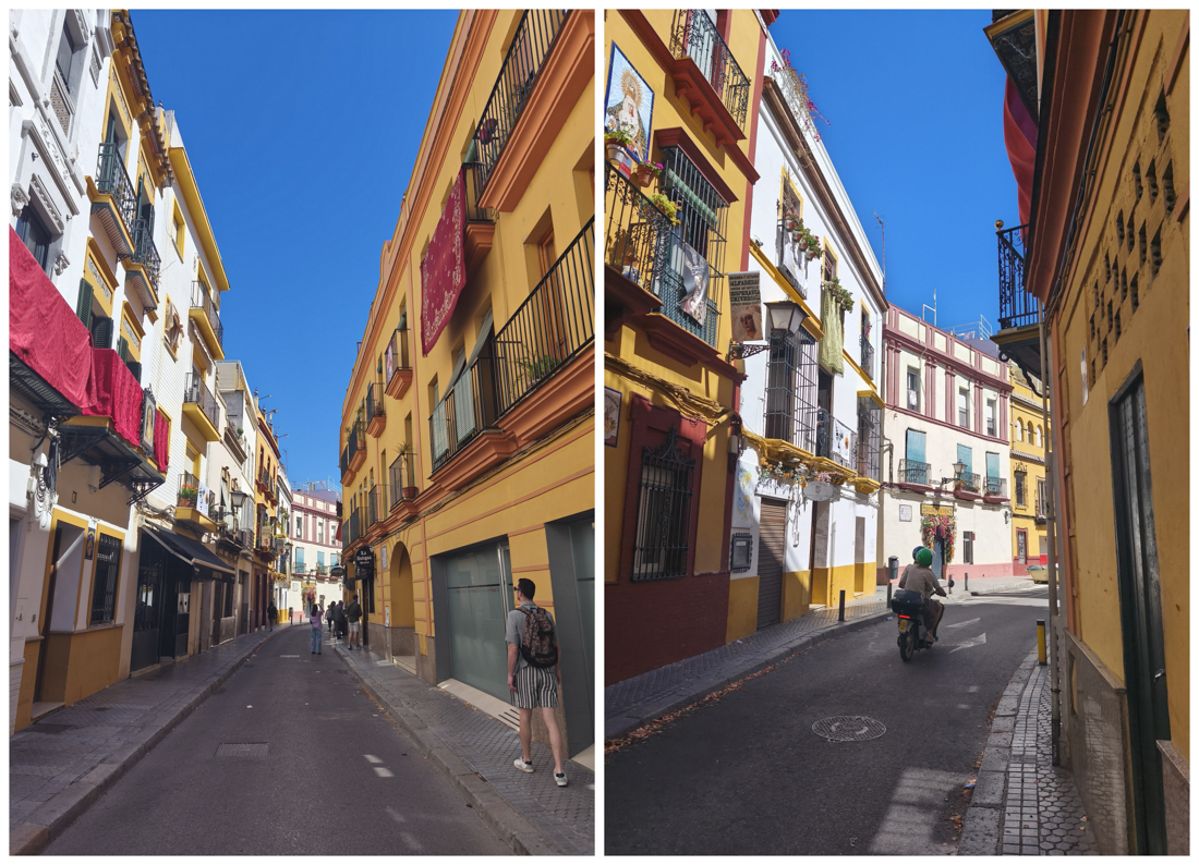 Séville se découvre très bien à pied (ou à vélo, si comme moi vous avez adopté les vélos en libre-service). Quel gain de temps et quel bonheur que de pédaler, la peau caressée par le soleil et la brise ! La ville est relativement compacte, mais chaque quartier a sa personnalité.